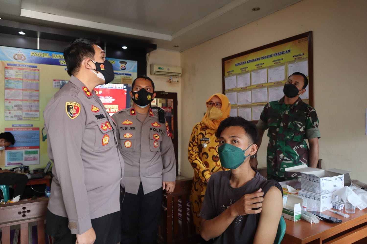 Vaksinasi massal presisi tersebut dilaksanakan di Mapolsek Kragilan, Jumat (12/3/2022).