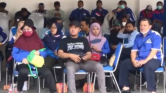 Hari pertama kebijakan tersebut mulai diterapkan peserta peringatan May Day atau Hari Buruh Internasional di Stadion Benteng, Kota Tangerang, Rabu siang (18/5/2022).