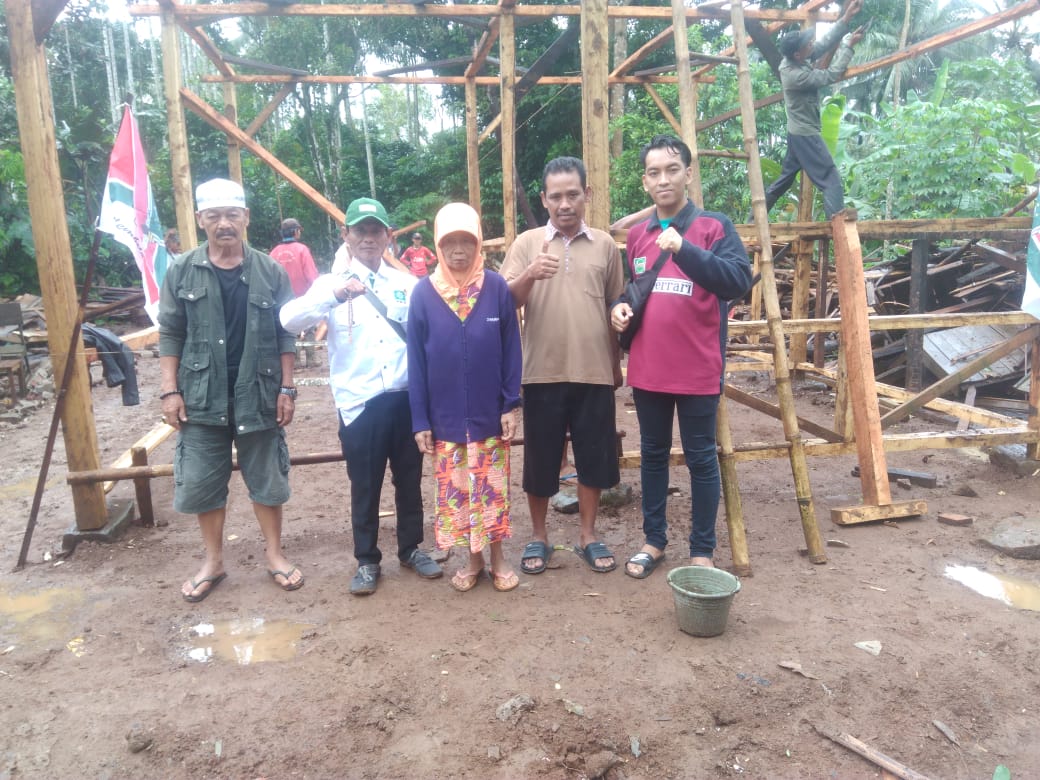 Pengurus Anak Cabang Partai Kebangkitan Bangsa (PKB) Mandalawangi dibantu oleh beberapa tokoh hari mengadakan gotong royong untuk kembali membangun rumah yang roboh tersebut, (27/12/2022)