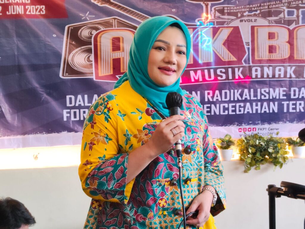 Dalam sambutannya juga mengucapkan Terima Kasih Kepada Ade Rosi Khorunnisa, Anggota Komisi III DPR RI , dimana BNPT merupakan salah satu Mitra Kerja dari Komisi III. Bisa menghadiri giat FKPT Banten Melalui Aksi Musik Anak Bangsa ini.