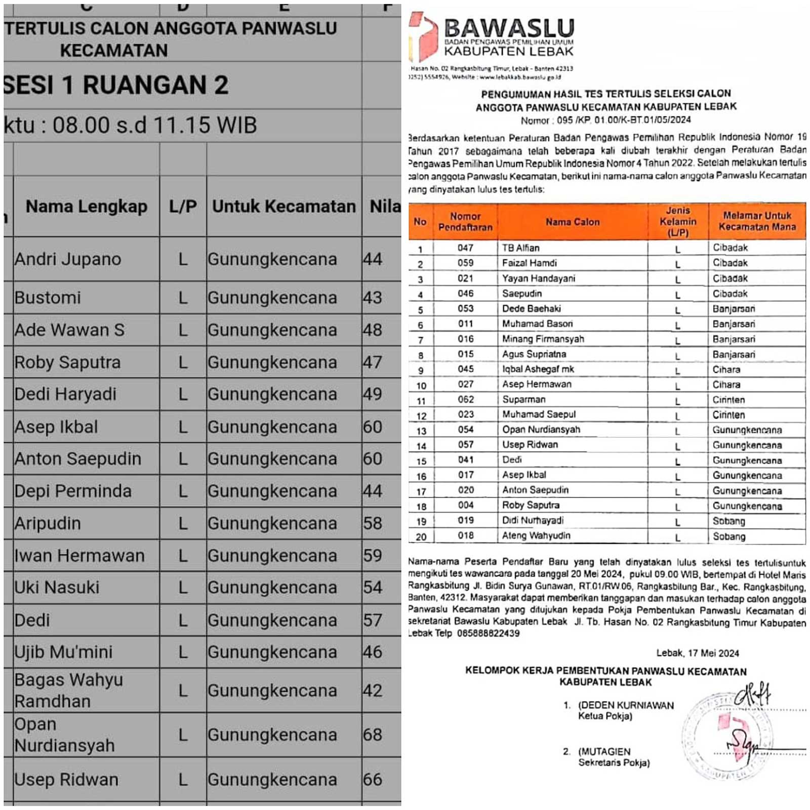 Hal tersebut tercantum dalam Surat Pemilihan Pendaftaran Calon Anggota Panwascam dalam rangka Pemilihan Tahun 2024 Nomor : 081/KP.01.00/K-BT.01/05/2024