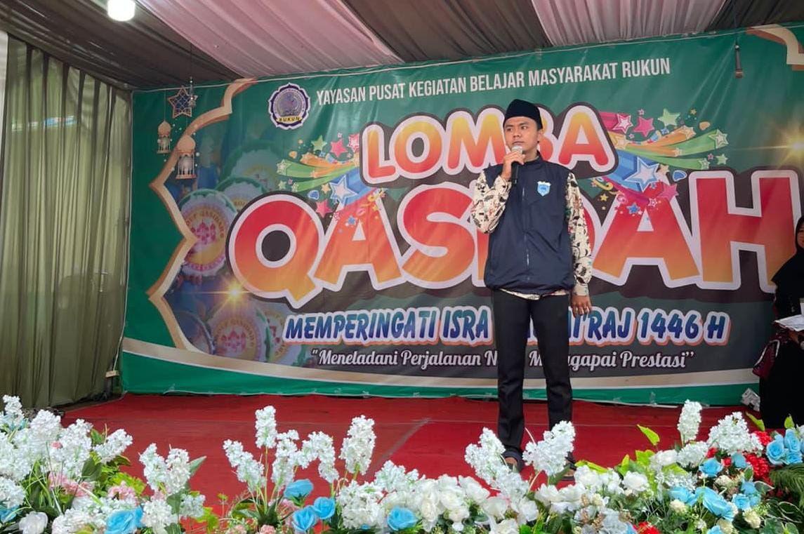 Bantenline.com, Pandeglang -Sebanyak 32 Peserta ikut meramaikan gelaran festival kesenian islami yang diselenggarakan oleh Pusat Kegiatan Belajar Masyarakat (PKBM) Rukun dalam Rangka memeriahkan Isra Wal Mi’raj Tahun 1445 Hijriyah, yang bertempat di Halaman Sekolah PKBM Rukun, Kp. Cibeunying, Cilaja, Pandeglang pada Sabtu (11/01/2025).