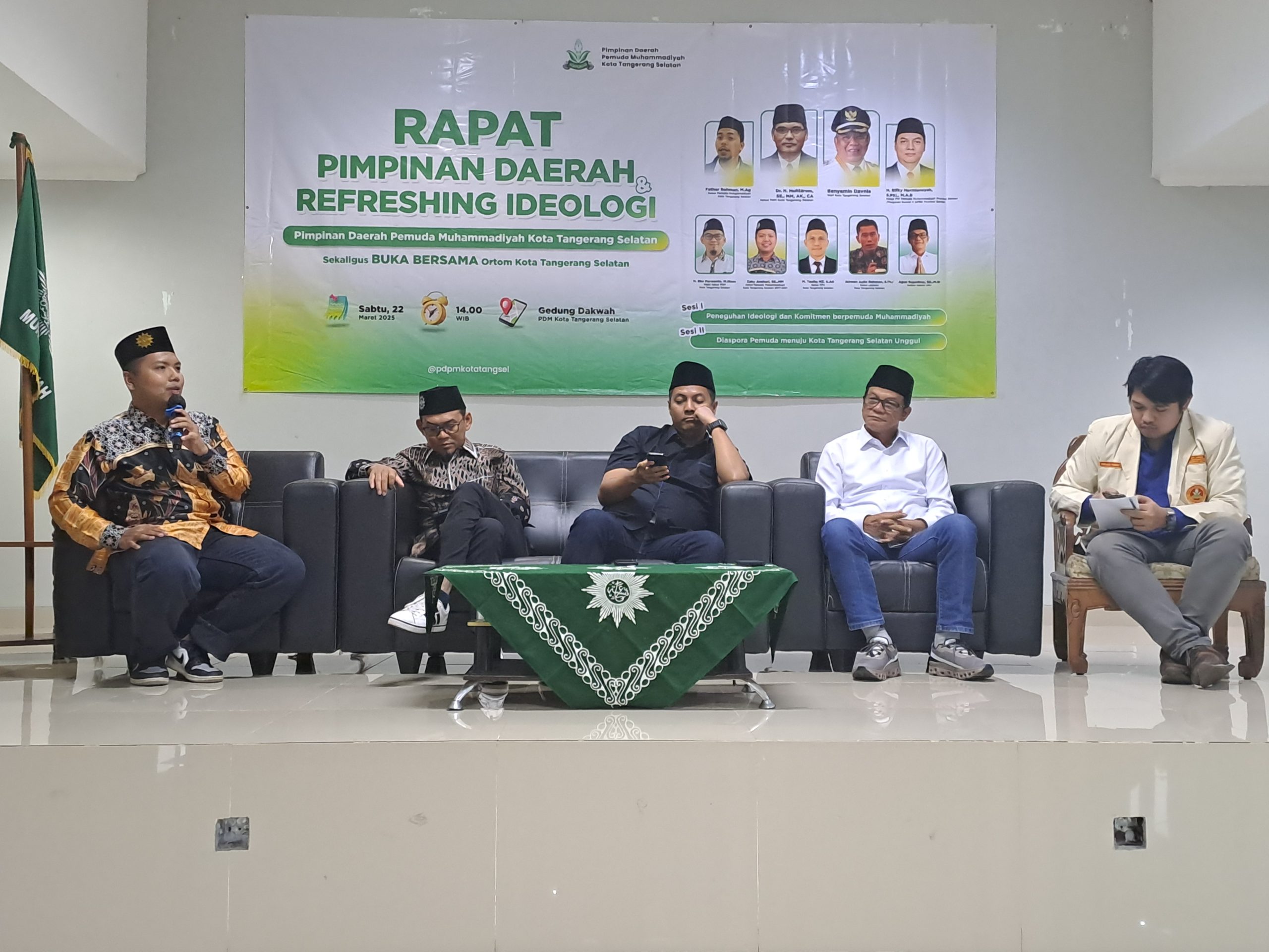 Setelah acara seremonial dilanjut diskusi sesi I yaitu tentang Peneguhan Ideologi dan Komitmen berpemuda Muhammadiyah serta sesi II tentang Diaspora Pemuda menuju Kota Tangerang Selatan unggul.