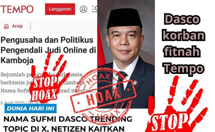 Terkait isu yang digiring oleh tempo untuk menjelekan pak Sufmi Dasco ini adalah fitnah yang keji , kami meyakin 100% berita tempo salah & akan melaporkan tempo ke dewan pers / penegak hukum bila di perlukan.