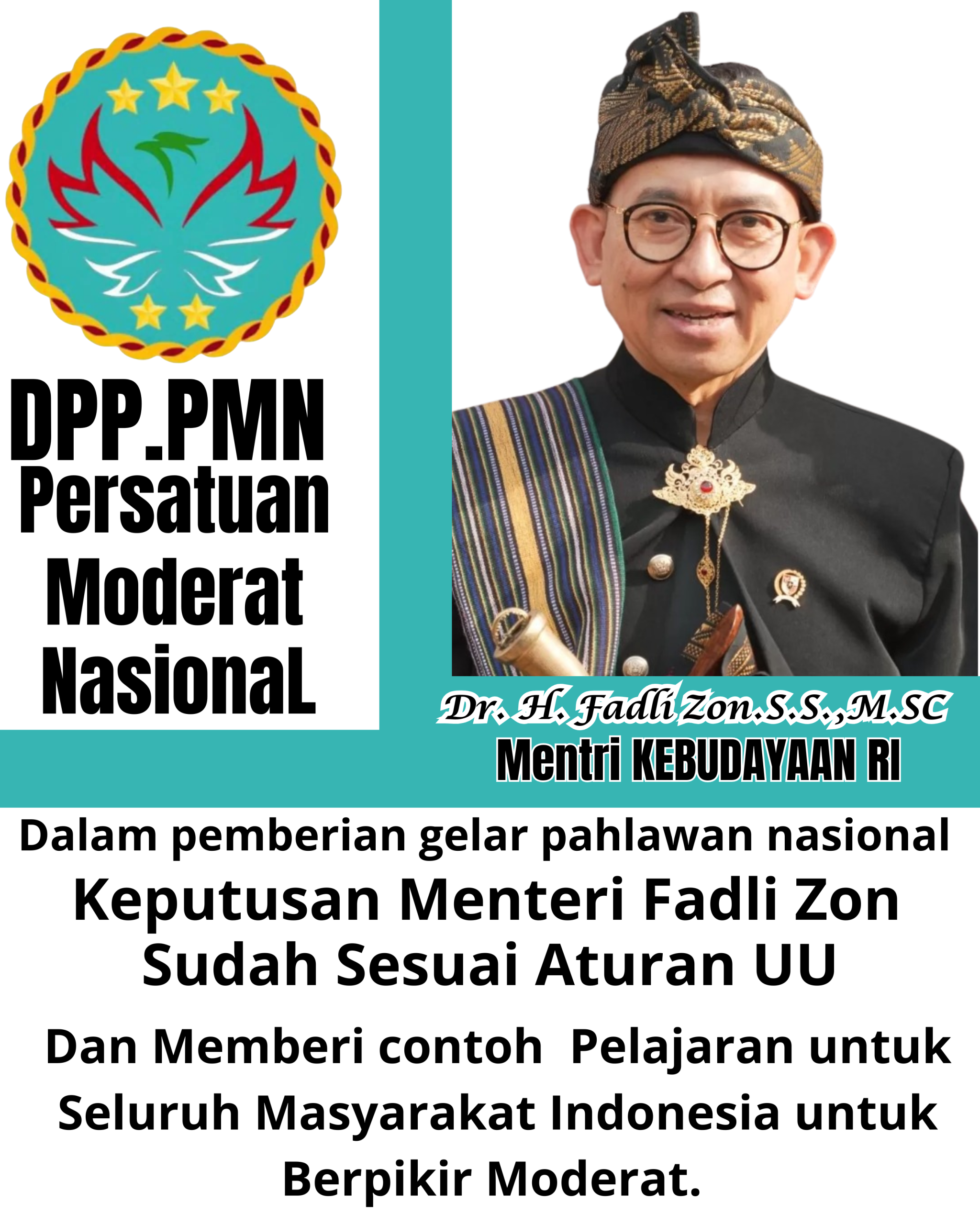 BANTENLINE, Jakarta – Dewan Pengurus Pusat Persatuan Moderat Nasional (DPP PMN) menyatakan dukungan terhadap keputusan Menteri Fadli Zon yang menetapkan sejumlah tokoh sebagai Pahlawan Nasional Tahun 2025.
