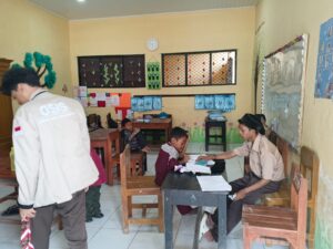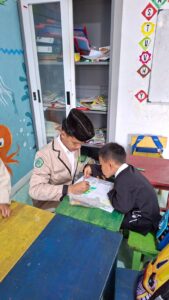 Seorang Murid tengaj serius membagi pengetahuan dwngam siswa tingkat Sekolah Dasar
